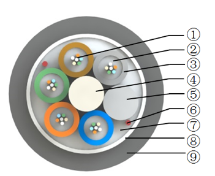 7 阻水纜膏、 8 雙面涂塑皺紋鋁帶、9 低煙無鹵阻燃外護套